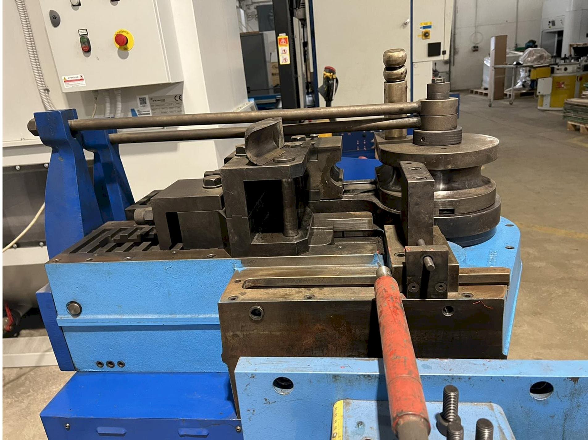 Cette cintreuse de tubes CBC Uni 90 a été fabriquée en 2006 en Italie. Elle est équipée d'une unité de contrôle CBC et compte 18 000 heures de production. La machine travaille avec un angle de cintrage maximum de 180 degrés et un rayon de cintrage mini-maxi de 50 à 250 mm. Elle comprend un jeu d'outils pour le tube D42 R = 84.