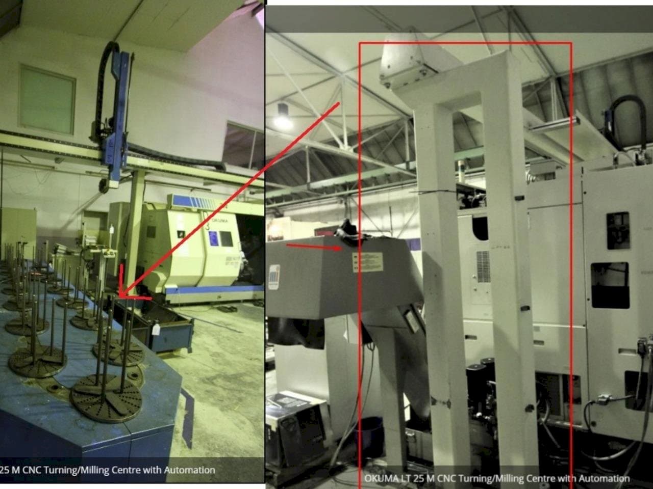 Ce tour Okuma LT 25 M a été construit en 1998. Commandé par une unité de contrôle Okuma OSP 7000 L, ce tour/fraiseur peut travailler avec une vitesse de broche allant jusqu'à 3800 tr/min. Cette machine est équipée d'un système d'automatisation PNEUMOTEC avec bras robotisé et alimentation en matière pour un total de 17 pièces jusqu'à un diamètre de 250 mm.